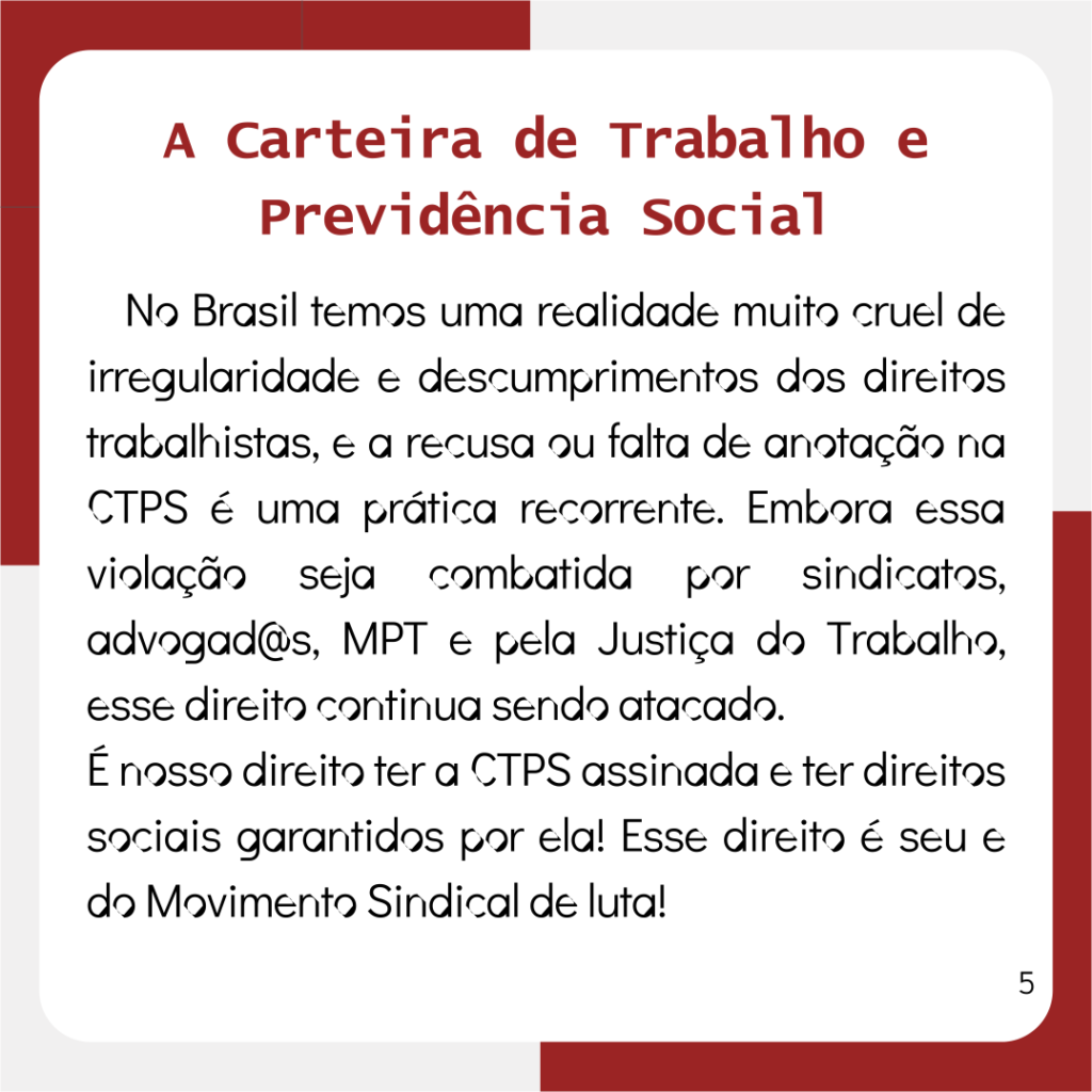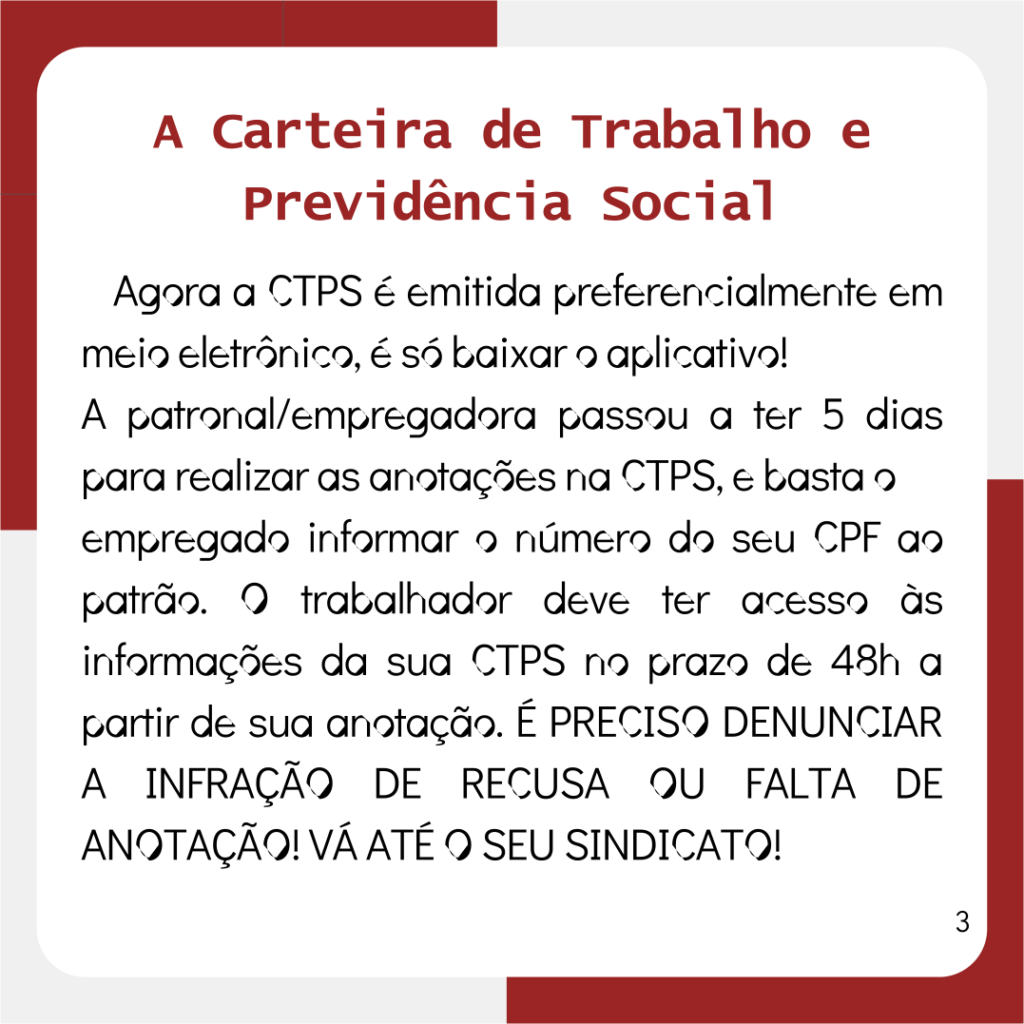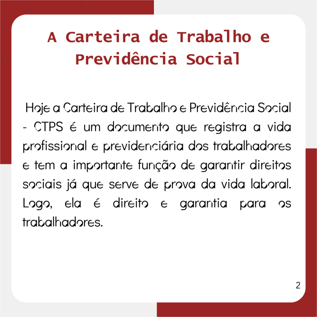 Ter a CTPS assinada e ter direitos sociais garantidos por ela!
