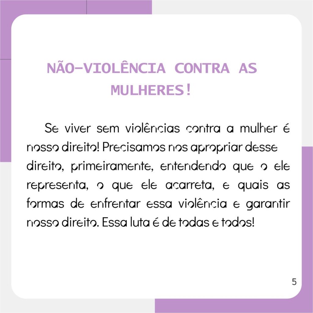 É NOSSO DIREITO: NÃO-VIOLÊNCIA CONTRA AS MULHERES! Deixe um comentário / Destaque / Por Juliane Azambuja / 19/08/2023 / diretoria, LUTA, mulher, MULHERES, POLÍTICA, stigpoa