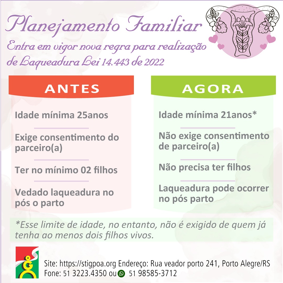 🚨INFORMAÇÃO DE UTILIDADE PÚBLICA🚨 Neste mês das mulheres temos muitas noticias boas, uma delas é que entrou em vigor, dia 05 de Março de 2023, a Lei 14.443 de 2022 que modifica as exigências para a realização de laqueaduras e vasectomias no âmbito do planejamento familiar.A mudança ocorre por meio da alteração da Lei do